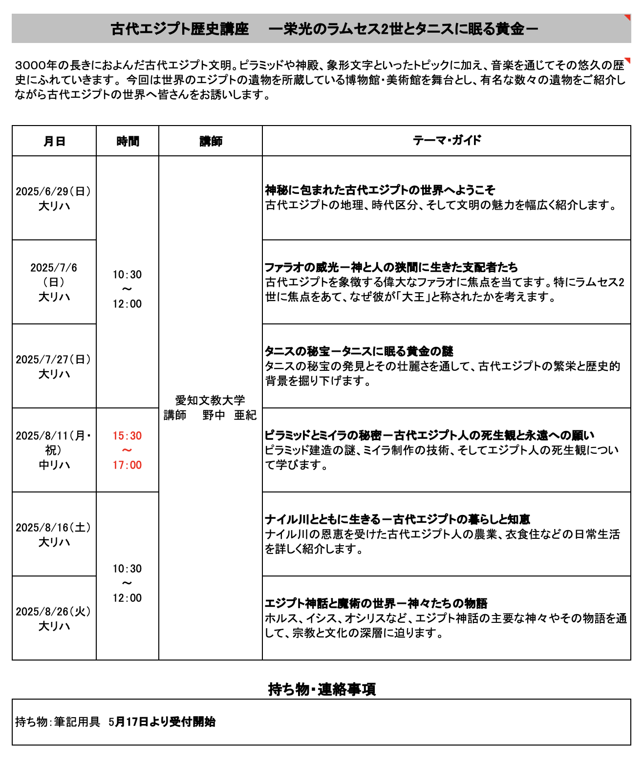 開講日時 : 2025年8月11日