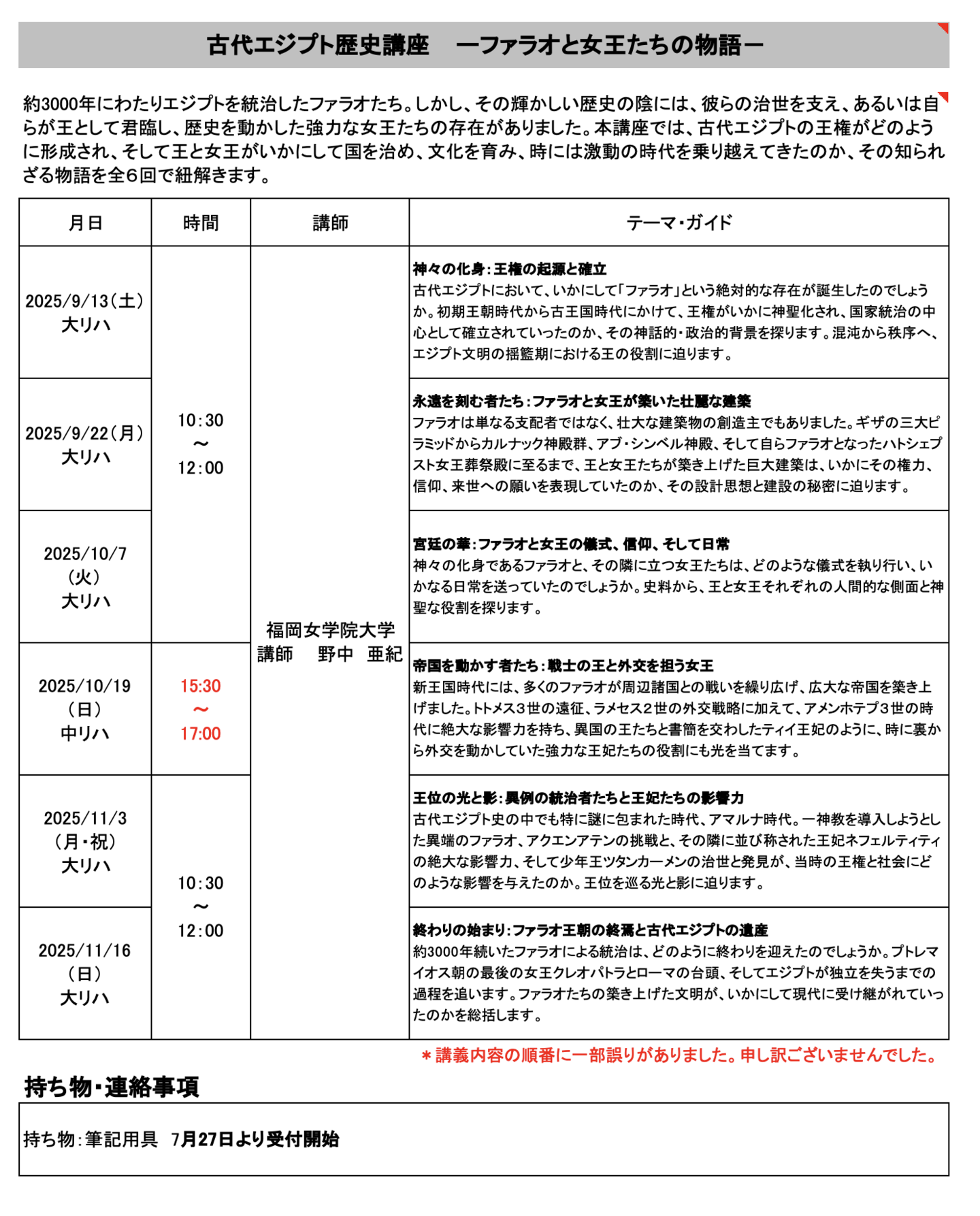 NEW!! 2025年度 秋の講座のお知らせ!