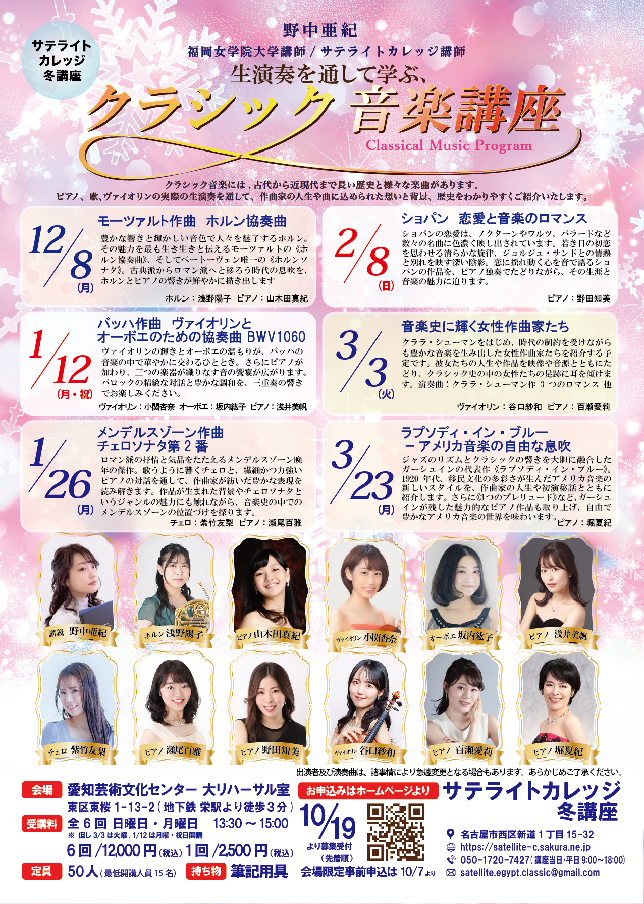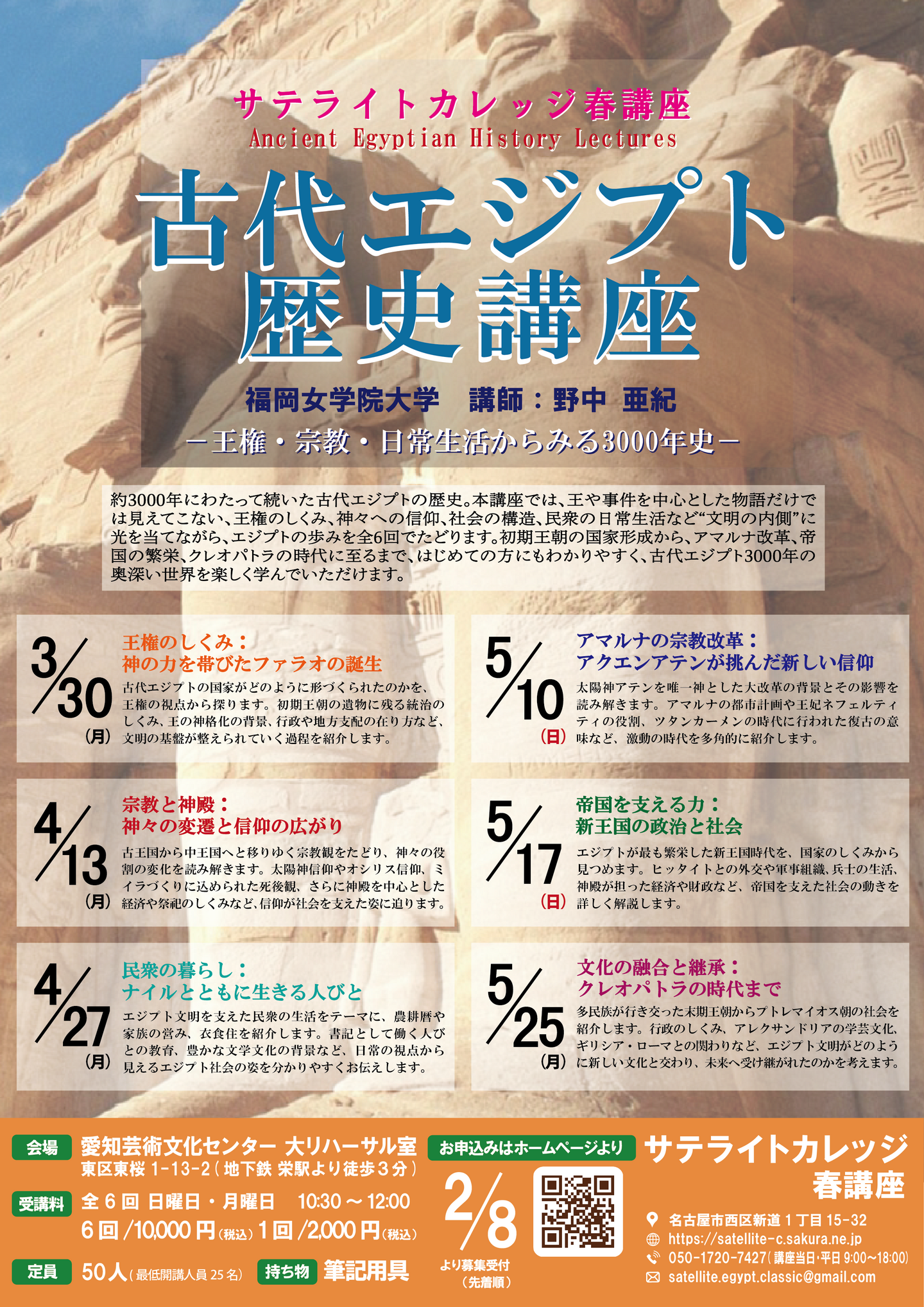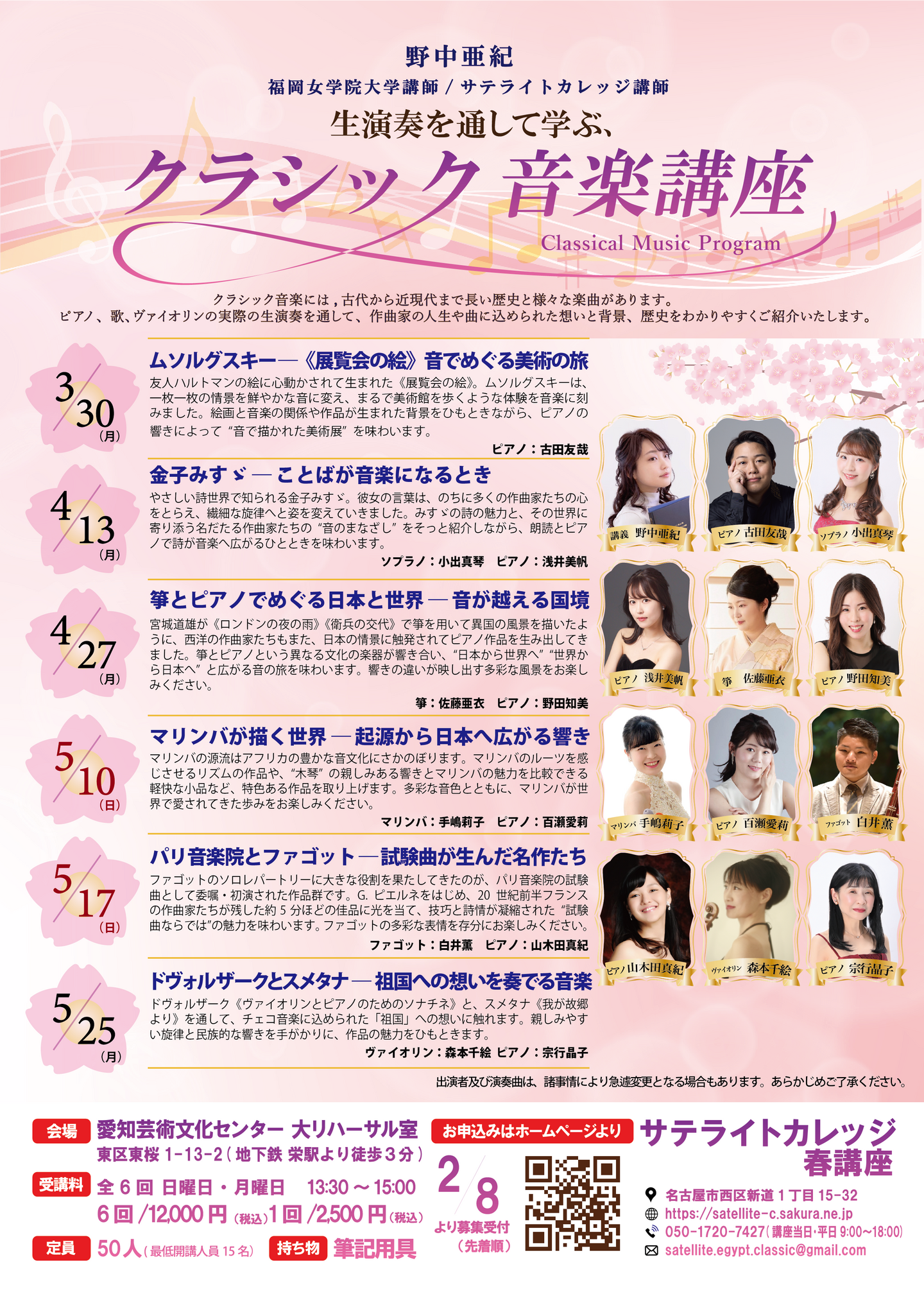 2026年度、サテライトカレッジ春講座の情報をアップしました。申込開始は2026年2月8日(日)からとなります。