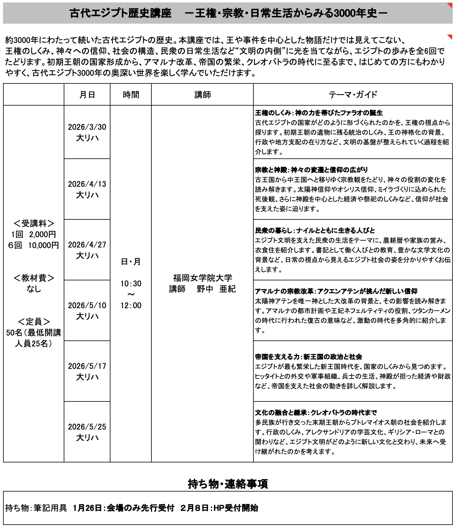 開講日時 : 2026年3月30日 ~2026年5月25日